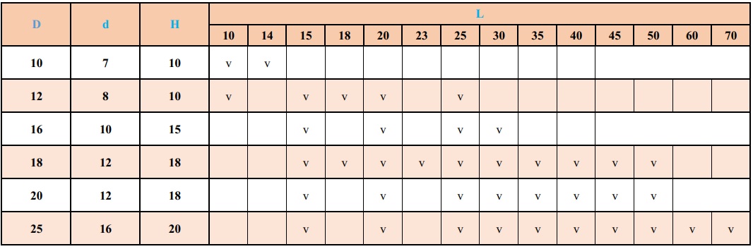 Đường kính D: 12 - 16 - 18 - 20 - 25